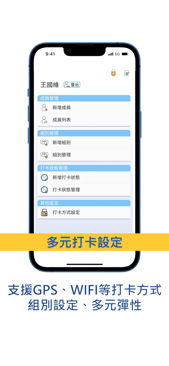 5. 多元打卡方式(GPS/定點打卡/單純打卡/Wifi打卡),支援不同應用型態。