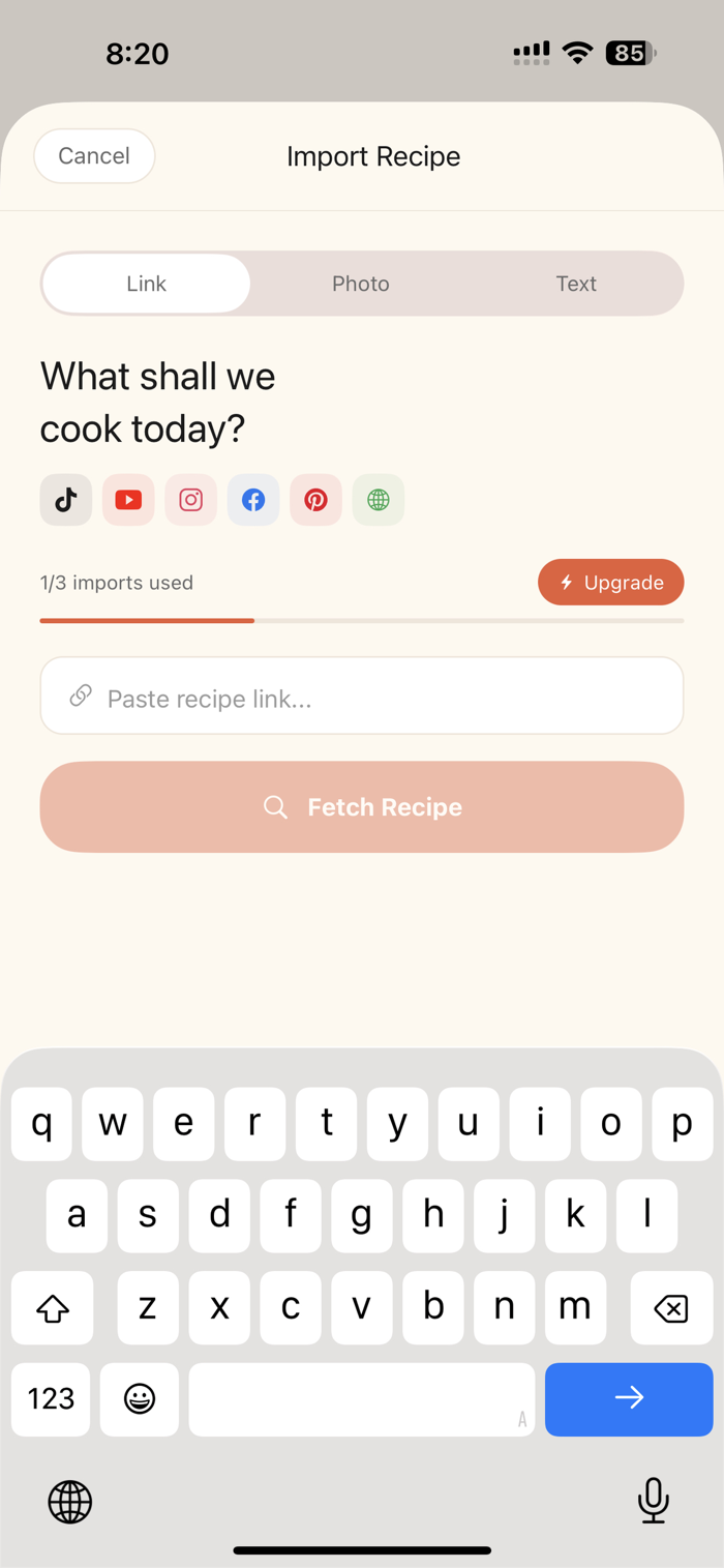 Paste a link from TikTok, YouTube, Instagram, or any website, and Flip extracts the full recipe. Then flip it to match your goals: high protein, low carb, gluten-free, dairy-free, vegan, keto, and more.