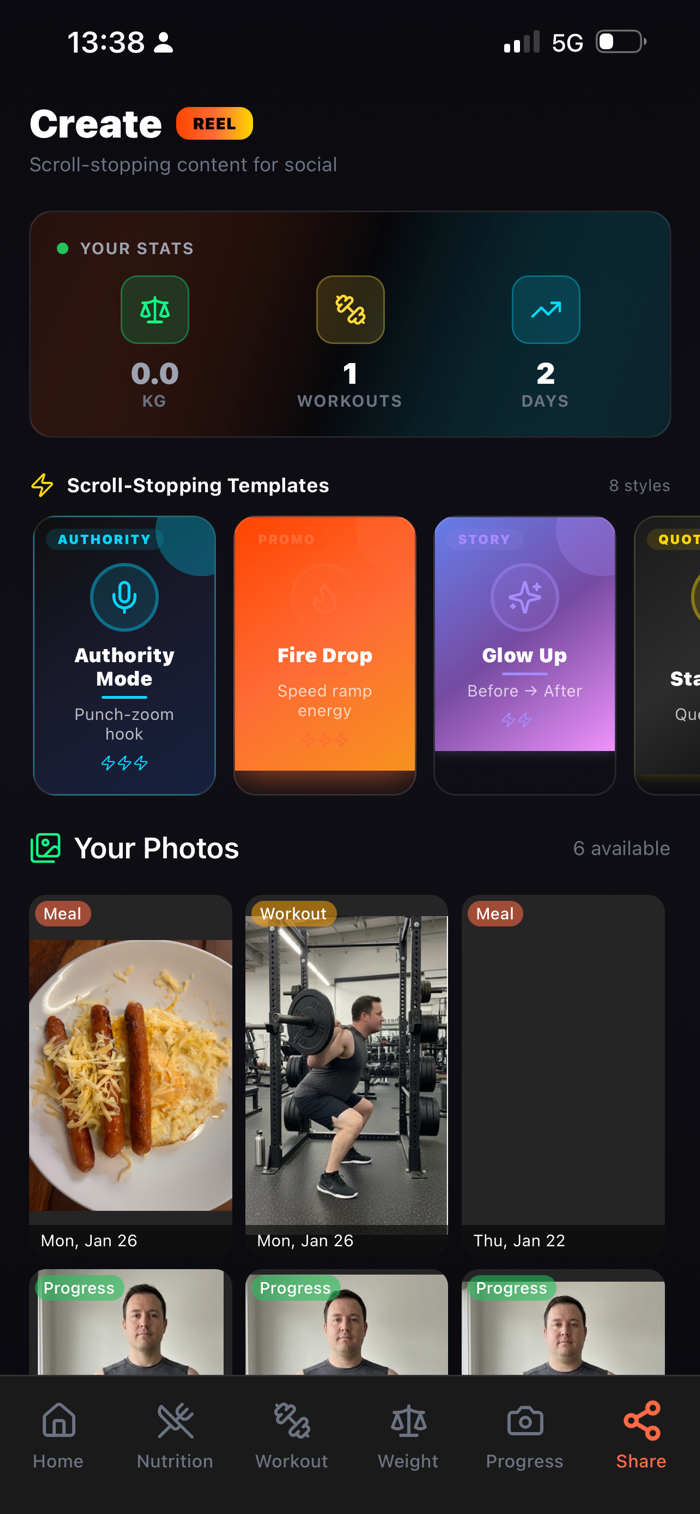 MyFit Journey is an all-in-one fitness companion designed to help you stay consistent, visualize real progress, and turn your hard work into content worth sharing.