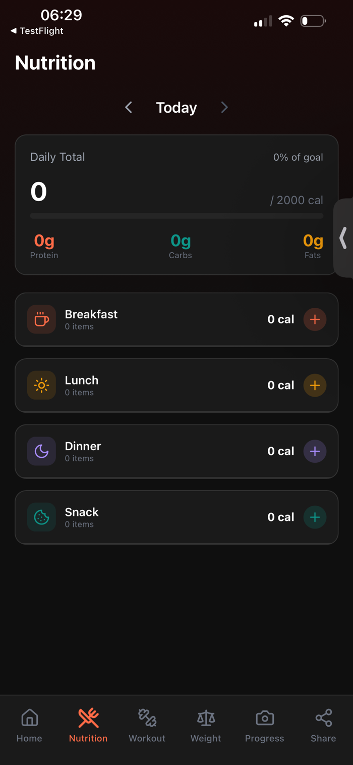 • Log meals with AI-powered food analysis — snap a photo or describe what you ate