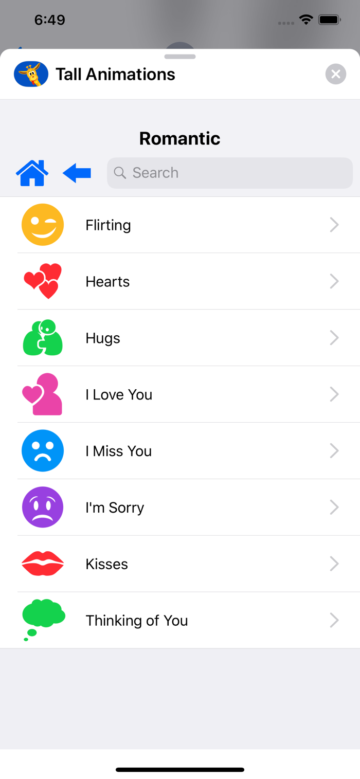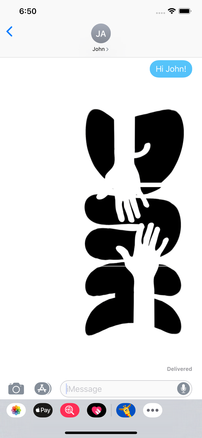 HOW IT WORKS: To send an animation, use the iMessage extension of the app and simply tap on the animation you wish to send. The app will load the first segment into the iMessage app for you to send. You then tap the Send button in iMessage to send it off. You then tap the Next Segment button to load the next segment for you to send, and so on. This will continue until all segments have been sent. Most animations are two segments "tall," but some are more.