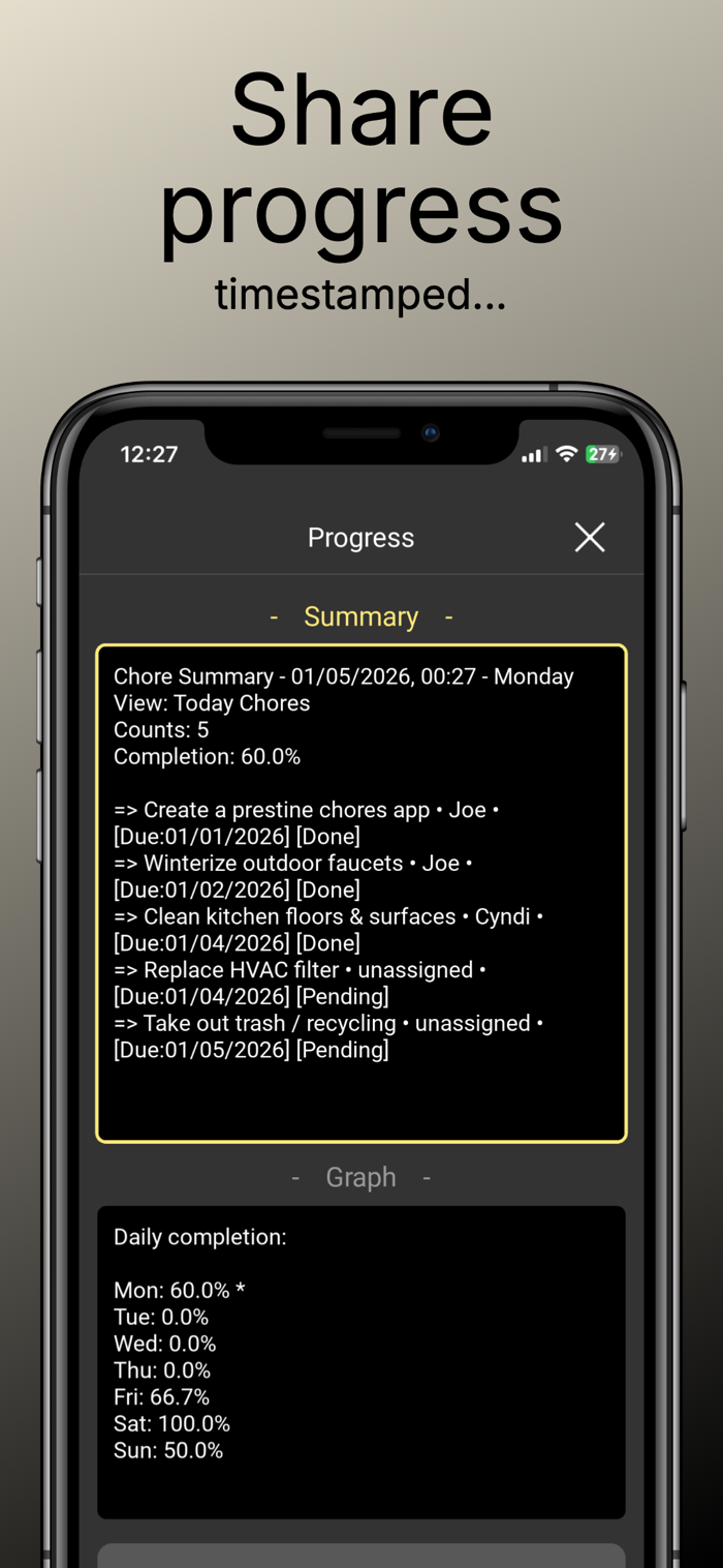 • Check chores off on completion