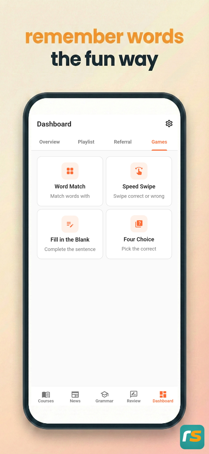 - 5个学习课程:通用英语、雅思、托业、语法和新闻——从A1到C2