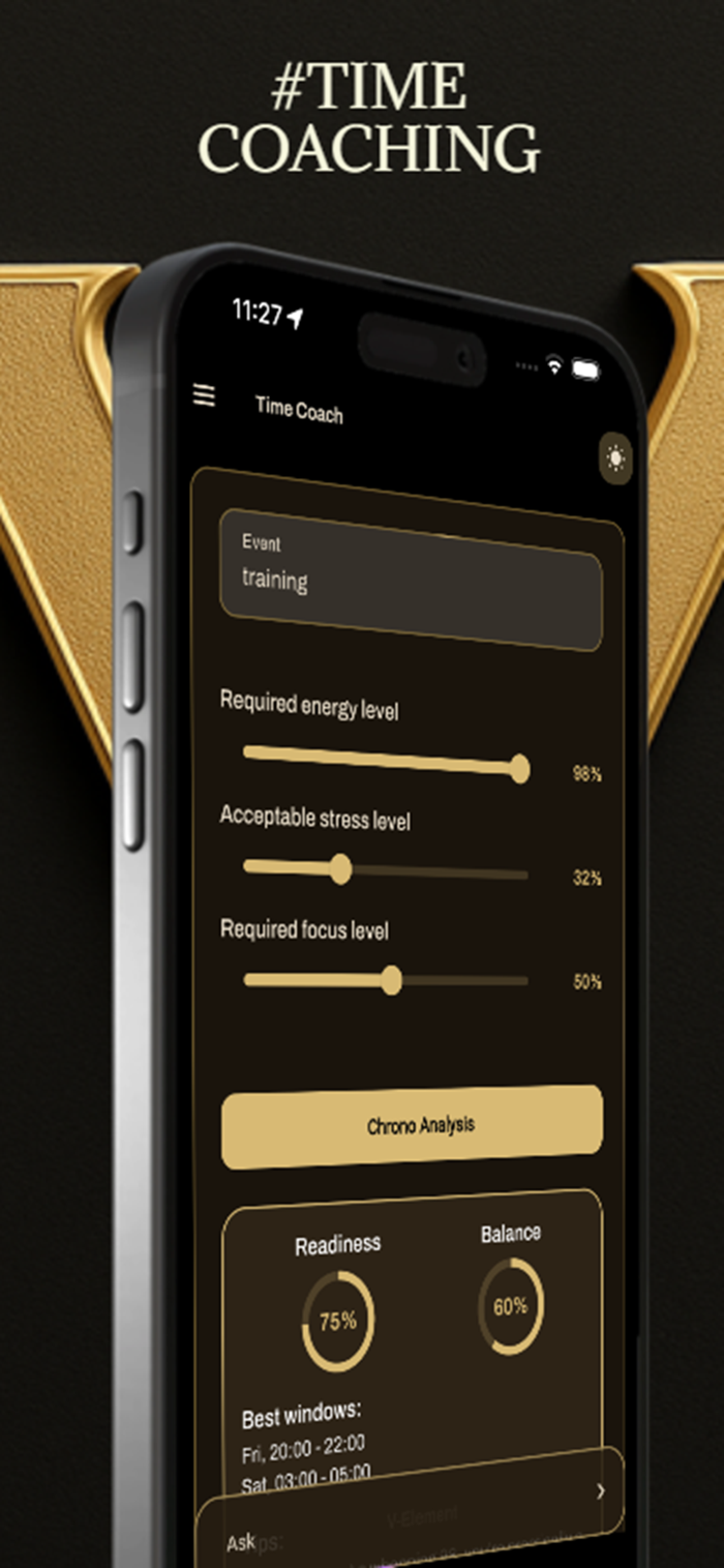 这款产品具备语音和 AI 聊天互动功能,按住可发言或输入问题,V Element AI 教练会提供个性化指导。基于精确空间数据与实时计算,有 NASA 级准确性。通过自然周期分析实现 AI 时机智能,能知晓最佳时机。设有每日能量仪表板,以交互式卡片展示情绪、清晰度和动力。还有自我意识伴侣,结合分析与反思,AI 伴侣学习情绪模式助您成长。