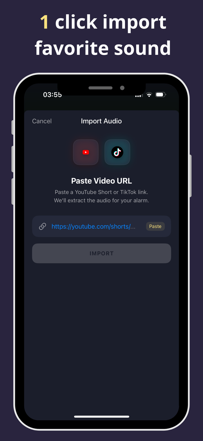 Don't wake up to annoying beeps. Wake up to your favorite motivational speeches. Import audio directly from TikTok or YouTube Shorts to start your morning with the right mindset.