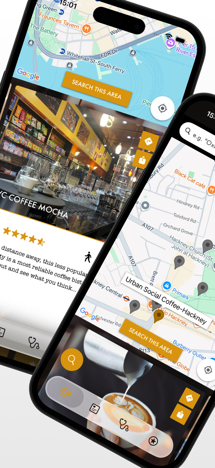 - 在地图上的任何地方进行搜索——在旅行前规划好你的咖啡停歇点