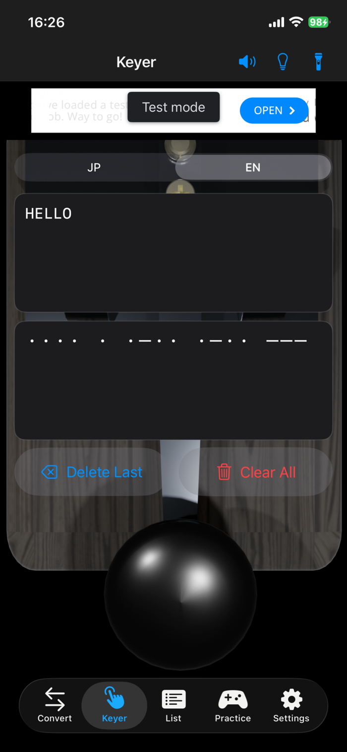 The app also supports key input, so you can enter signals with a straight key or paddle and convert them into Japanese or English text.