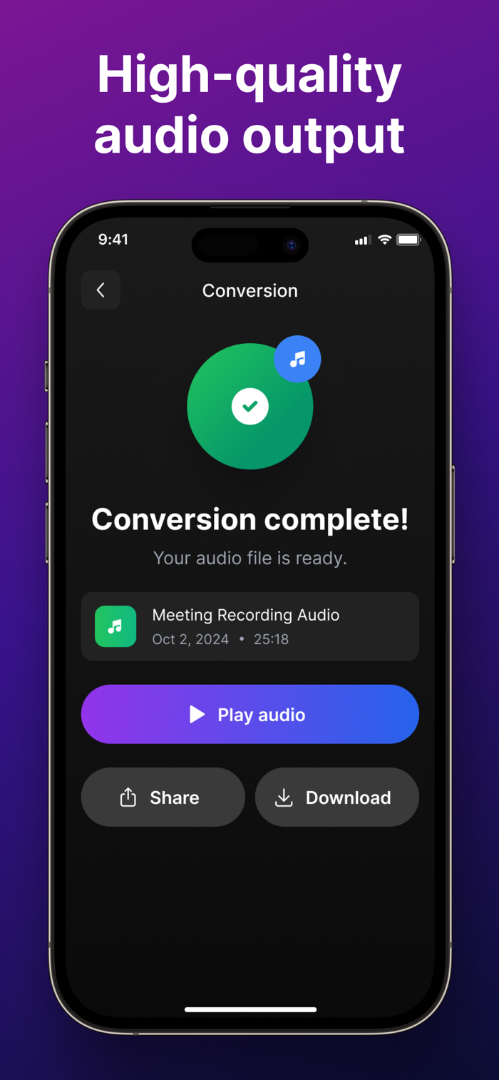 Audio Extractor – MP4 to MP3 可在设备上直接将视频转高质量音频,无需复杂软件、电脑及上传网络。支持 MP4 等常见格式,导入后能预览并一键转换,保留音频质量。内置裁剪功能可截取片段,转换后音频可多方式保存分享。界面简洁,新手易上手,满足进阶需求,适用于多种场景,能快速提取视频高质量音频。