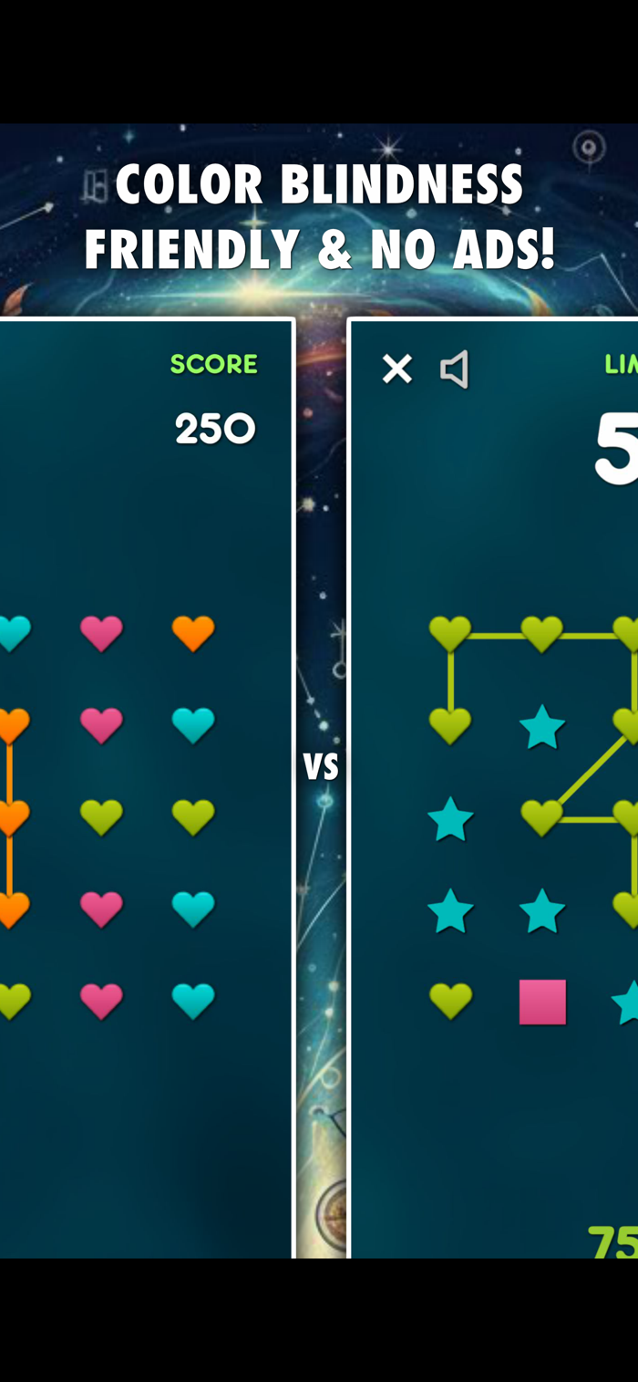 • Color-blindness friendly! (Play with hearts only or with various shapes)