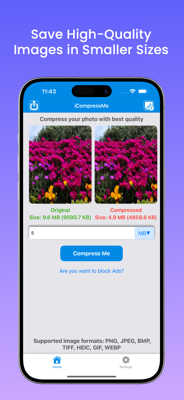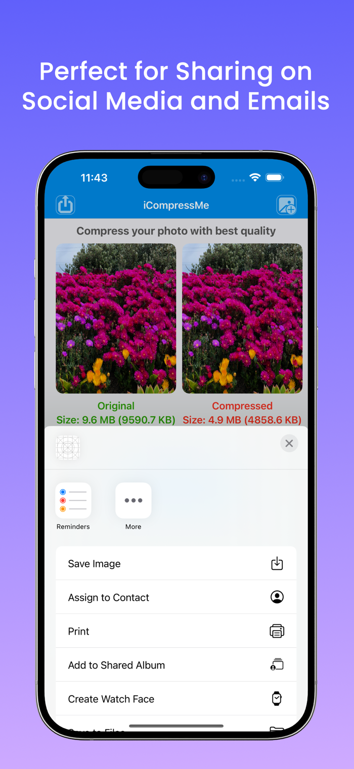 iComressMe is a powerful image lossless compression tool. You can compress image as per you size choice. The converted image will be same clarity and retain the original resolution.