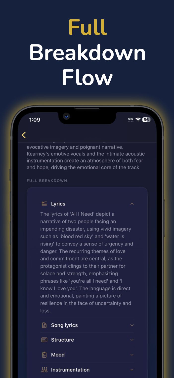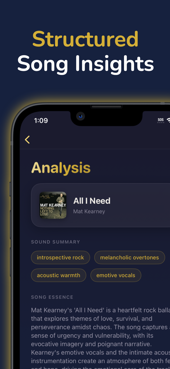 Pick a track from the Apple Music catalog and get a breakdown built for creators: a concise sound summary, optional song essence, and clear sections for lyrics, structure, mood, instrumentation, and emotional arc—plus style tags ready for AI music tools.