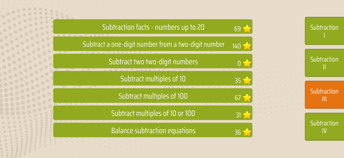 Subtraction facts - numbers up 100