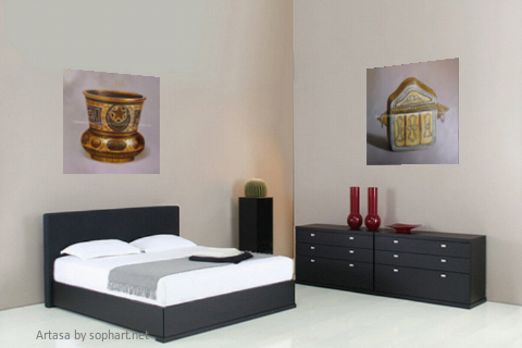 Use the 3D functionalities to simulate in an interior view artworks downloaded from ARTASA original collections (abstract and figurative artworks): move, rotate, resize the selected artworks within an interior view and place it applying 3D perspective.