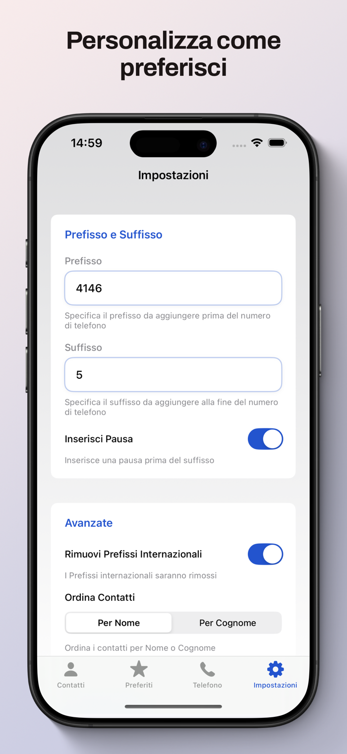 Corporate Call prefisso 4146 是一款可在拨打电话时自动添加前缀的应用程序,无需修改手机通讯录。适用于使用企业 SIM 卡及差异化计费套餐的用户。其界面类似 iPhone,上手容易。核心功能包括可自定义前缀、管理后缀消除语音提示、不改变 iPhone 通讯录、管理常用号码、记录是否为某联系人使用前缀、支持通过小键盘直接呼叫、可自定义界面颜色,还能添加快速常用号码,让用户无需繁琐复制粘贴或手动修改通讯录,就能使用企业约定。