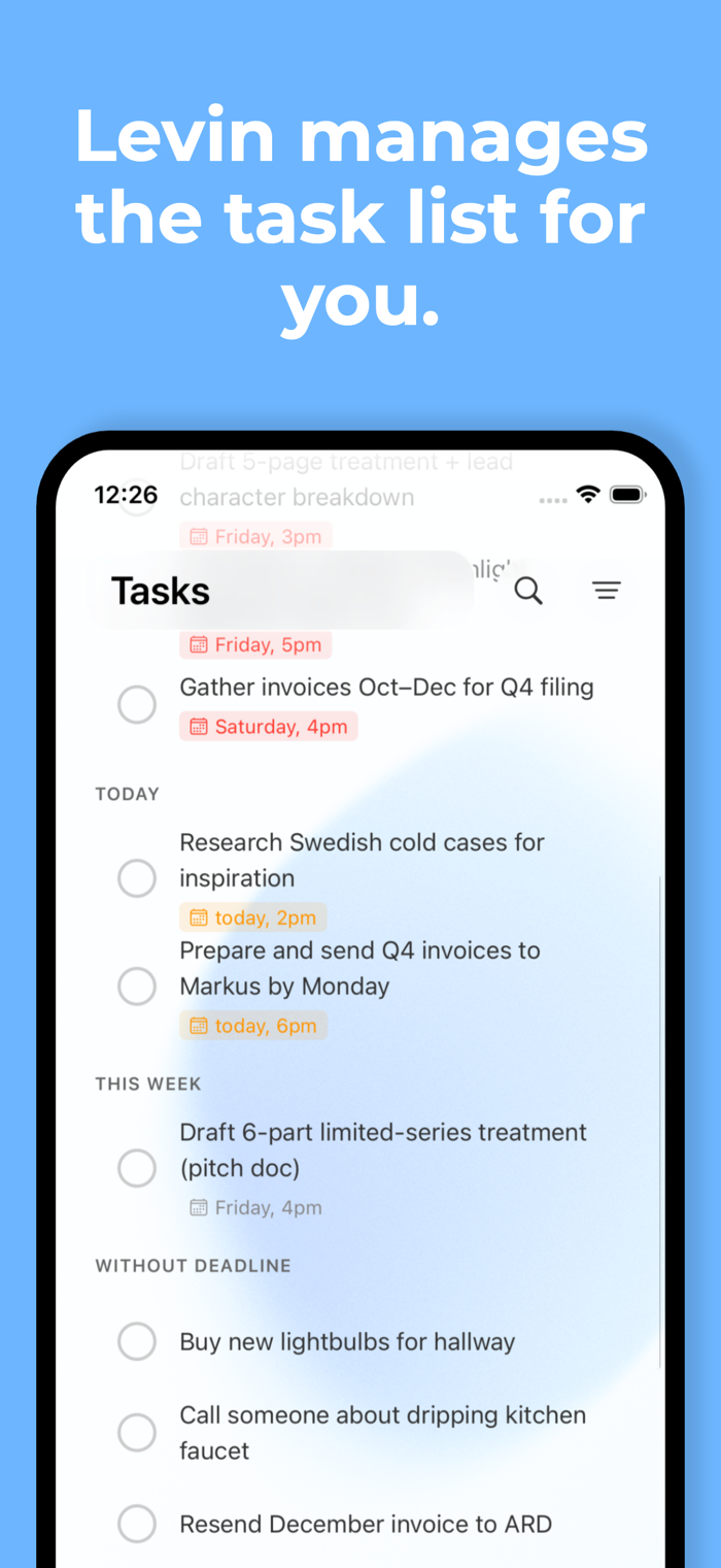 With Levin, you can capture thoughts instantly without deciding what they are. Sort things later when you actually have time. Turn ideas into tasks only when they’re ready. Keep everything connected without overthinking structure.