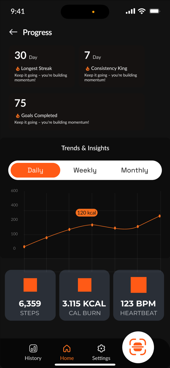 No more manual logging. No more guessing portions. Just snap a photo of your meal and get instant calorie estimates in seconds.