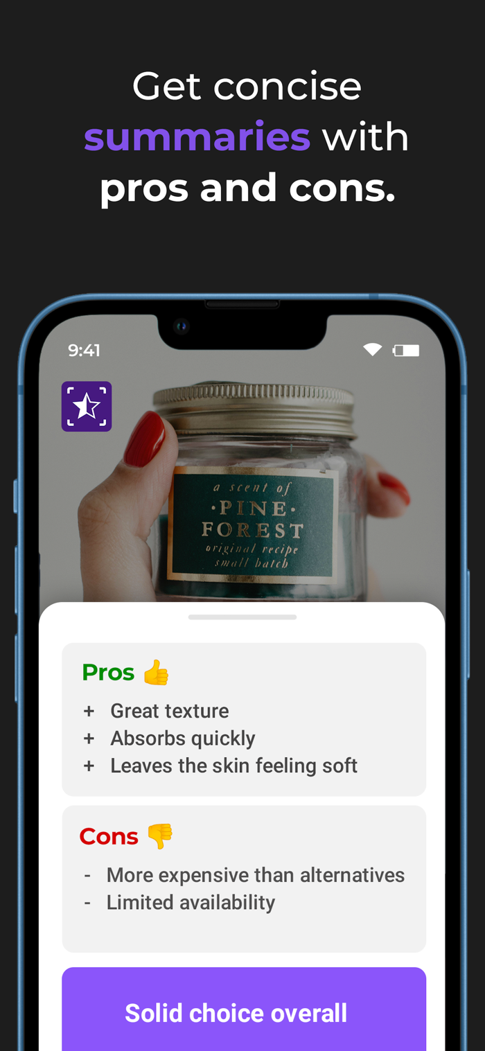 FullReview AI是智能购物助手,扫描产品可即时获取真实顾客评论的清晰总结,涵盖优缺点,聚合网络评分与反馈,提供准确无偏见信息。还能深入提问,如产品对敏感肌是否适用等,AI基于真实用户体验快速可靠作答。适用于各类产品,如电视、耳机等。即将新增并排产品比较助快速选择,以及价格追踪与提醒功能。