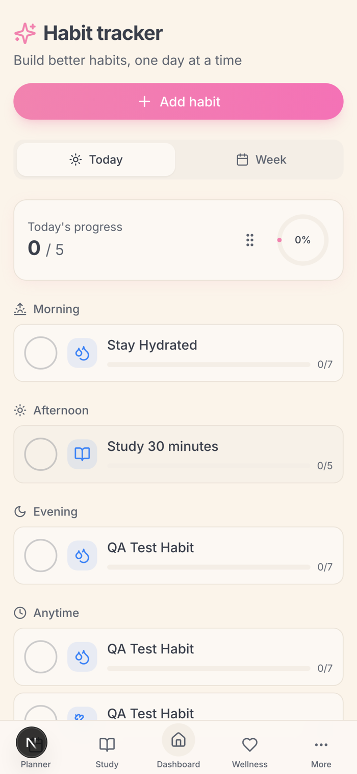 Built with "calm clarity" — no harsh warnings, no guilt-trips about broken streaks. Just supportive tools to help you thrive.