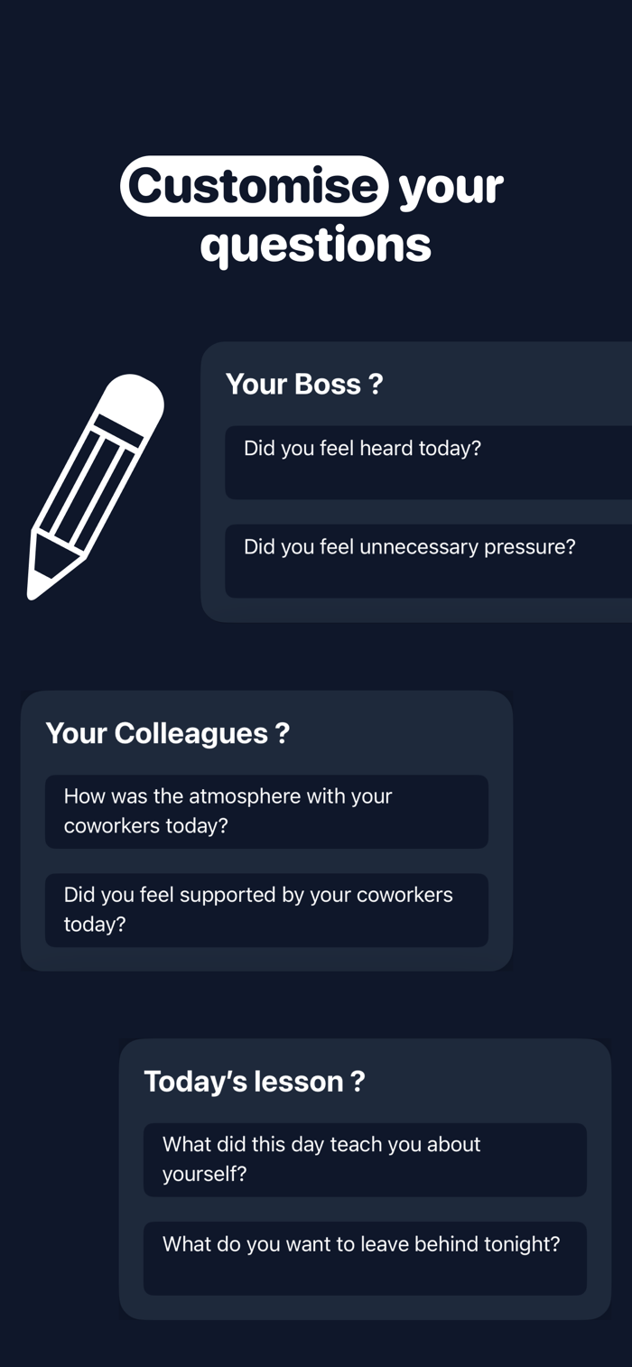 Daily mood surveys — quick, focused questions about your environment, and personal growth