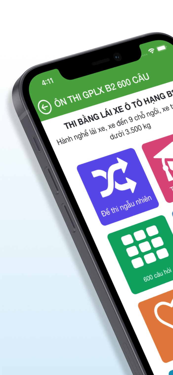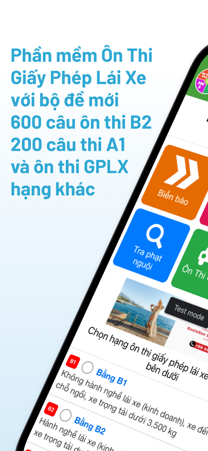 该应用提供GPLX考试600道最新B2驾照练习题目、A1驾照考试200道练习题,涵盖摩托车、汽车驾照考试,可免费学习B2、B1驾照及A1摩托车驾照考试。还提供C、D、E、F、A2、A3、A4级GPLX考试练习,集成汽车-摩托车低温罚款功能,能检查交通违规罚款等级、摩托车乘客未购买保险错误,包含道路交通法、标志及交通违规处理等级议定书。