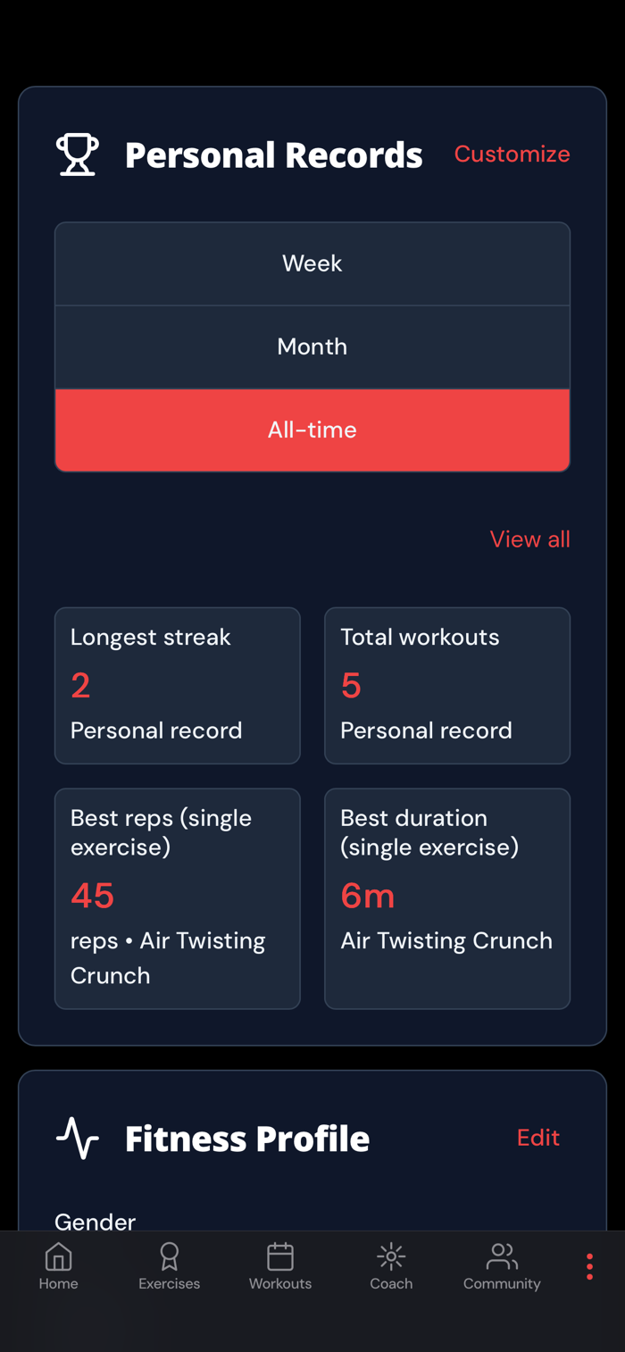 • Fitness profile data is used only to personalize workouts and insight...