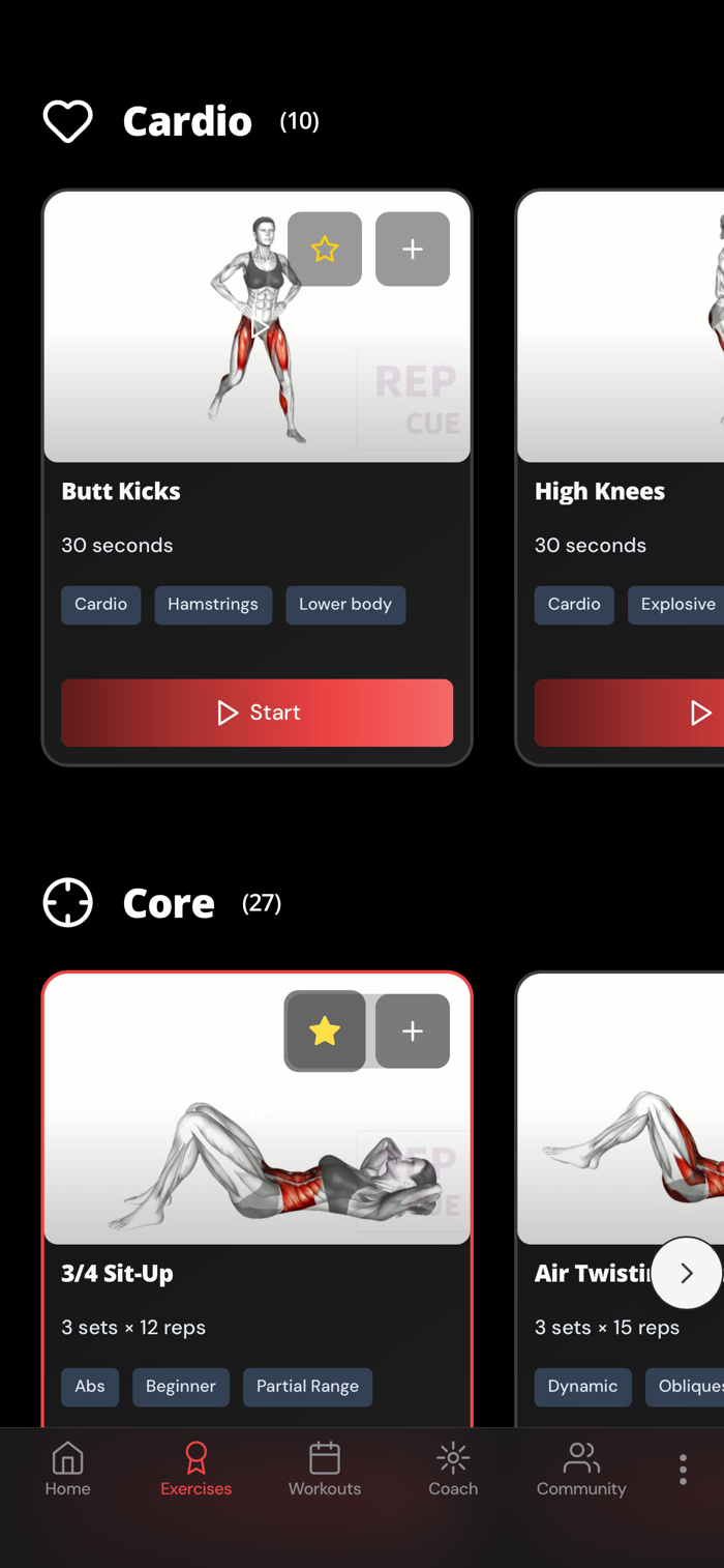 • Create custom exercises with optional video uploads