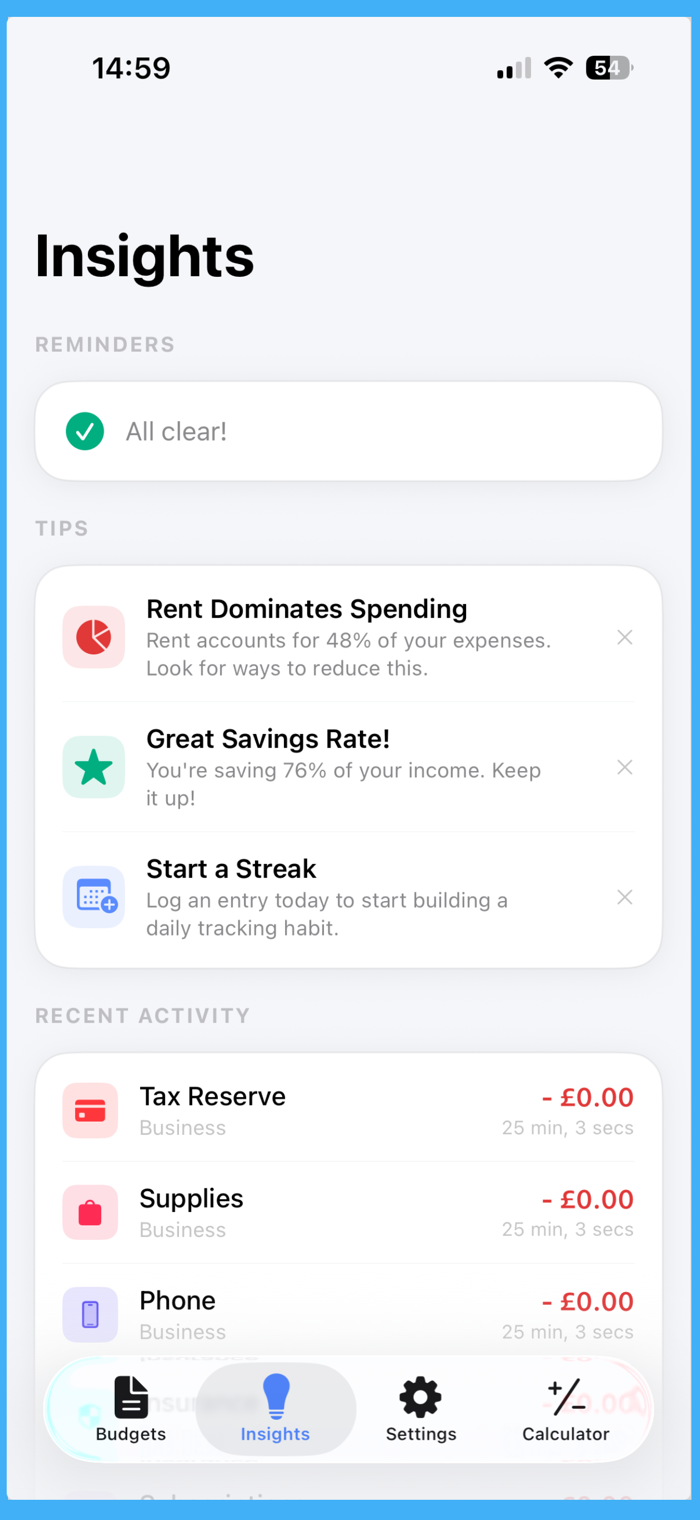 Budject Rush is a beautifully crafted personal finance app designed to make budgeting simple, visual and stress-free. Track your income, monitor expenses, set savings goals and understand your spending habits — all in a clean, intuitive interface built for everyday use.