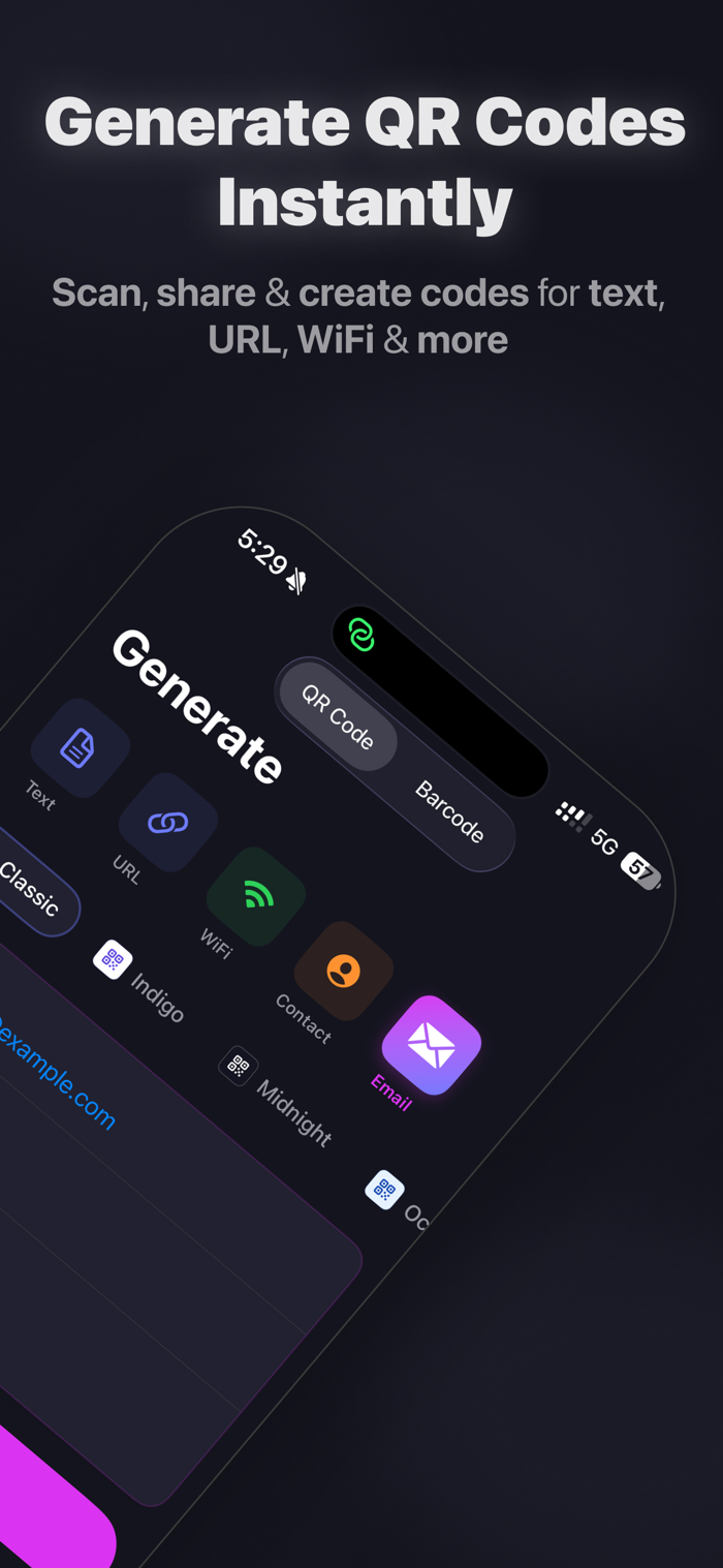 为网址、纯文本、Wi-Fi信息、名片等创建二维码。自定义样式,导出为图片或PDF,随时随地分享。