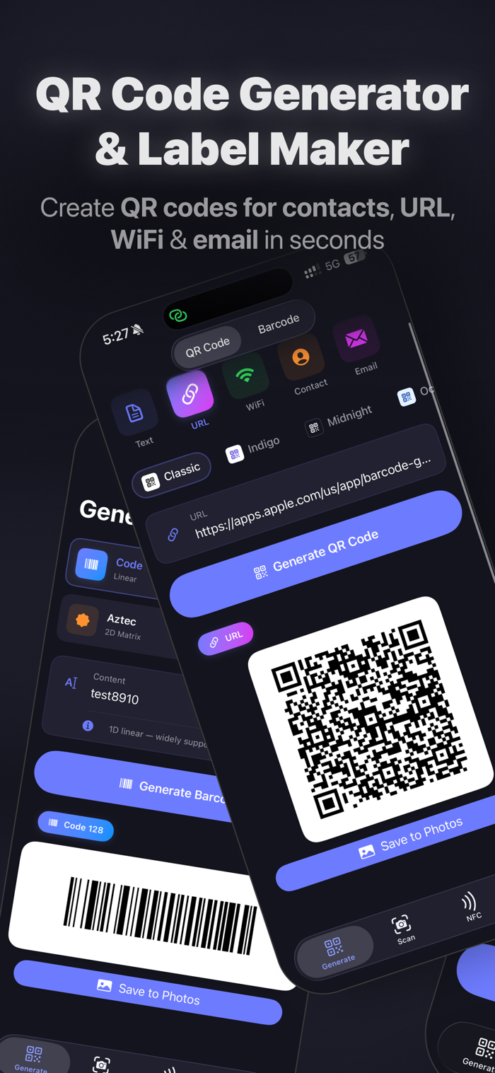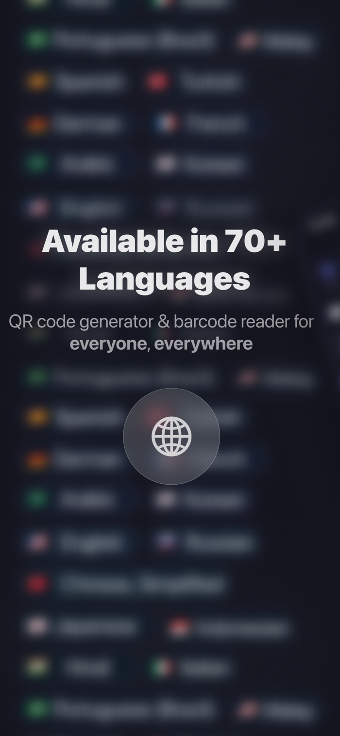 轻松创建专业二维码和条形码,即时用摄像头扫描任意条码,读取或写入NFC标签——一款精心设计的应用搞定一切。所有功能在本地运行,无需账户,无需云端,毫无限制。