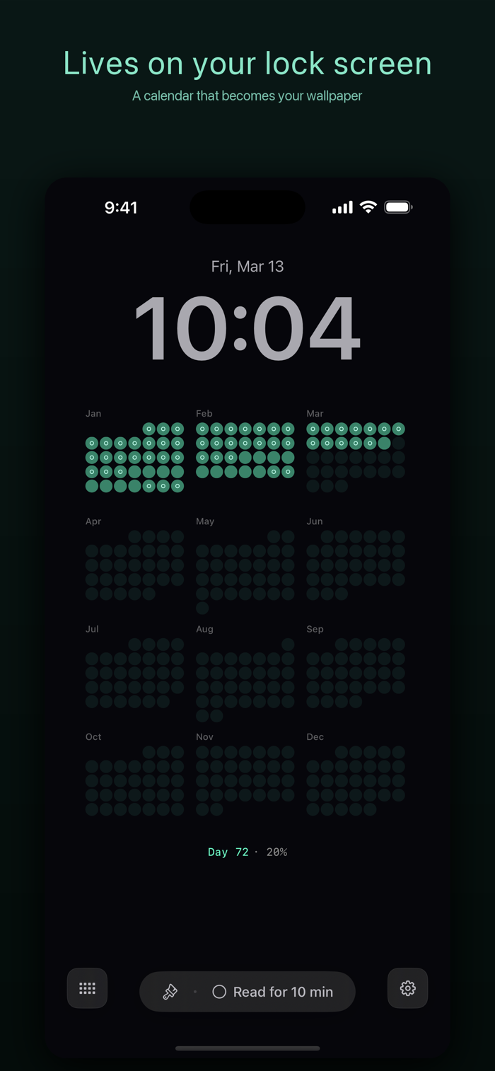 Yearly turns 365 days into something you can see and feel. A single grid. Your progress. Your wallpaper.