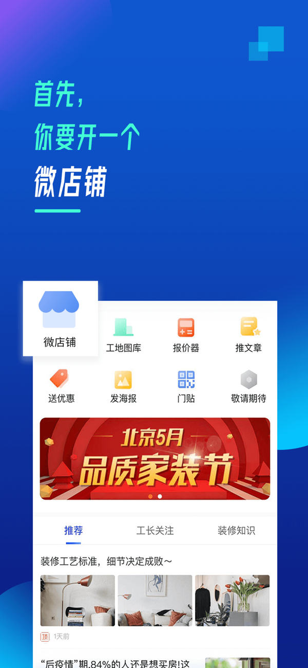 抢工长将工长定义为家装项目经理,自 2015 年开展系列活动助工长创业,口碑渐积。其工长版是服务家装项目经理的营销获客工具,含微店铺、工地图库、获客工具、智能量房、客户管理等功能。微店铺助工长多渠道推广展专业;工地图库解决施工素材存储分享问题;获客工具多样助力获客;智能量房精准高效;客户管理方便工长记录回访跟进客户,多维度解决工长获客难题。