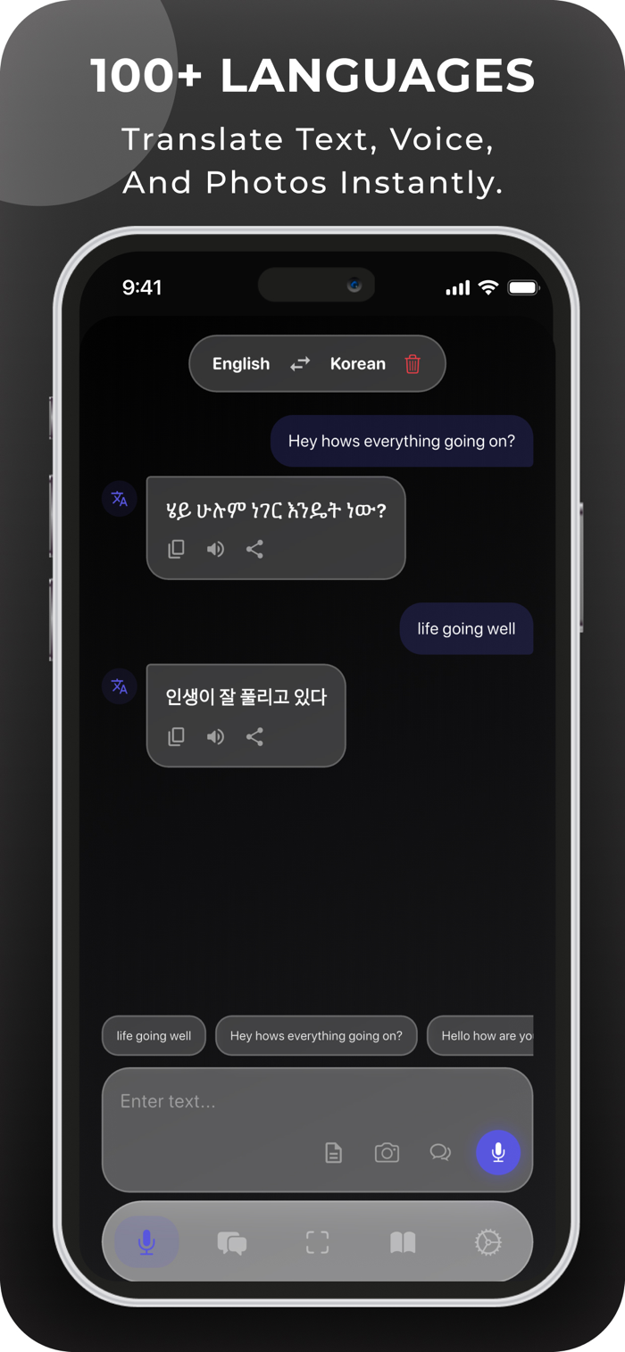 在 WhatsApp、iMessage 或电子邮件中直接翻译。使用母语输入,瞬间发送 100+ 种语言的消息。