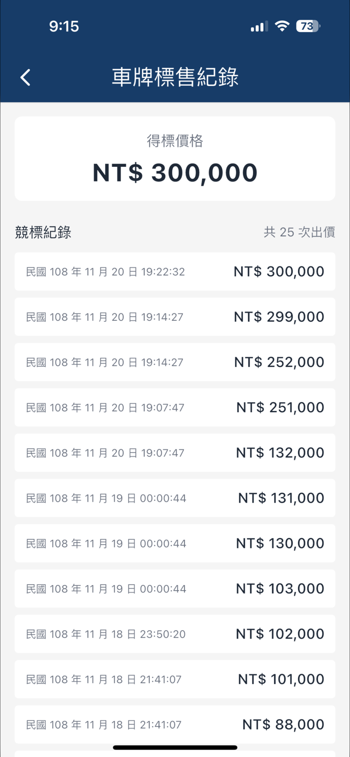 ● 這車牌標售紀錄?