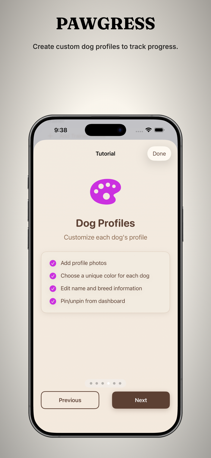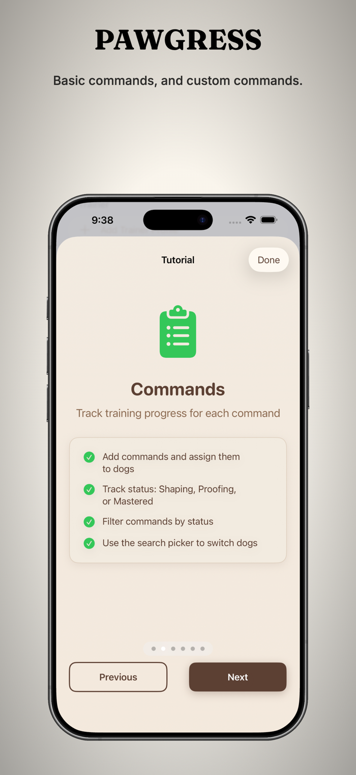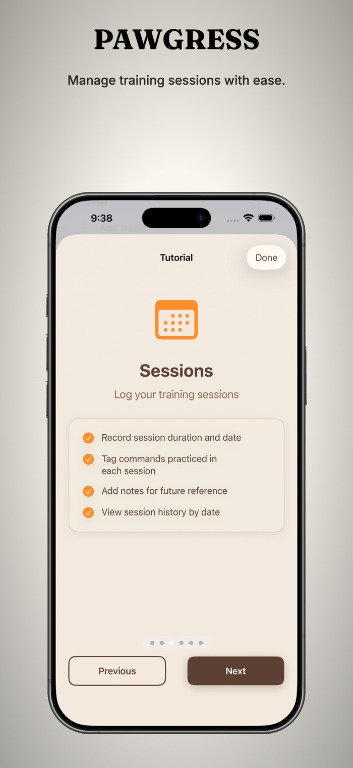 Whether you have a brand-new puppy or a seasoned sport dog, Pawgress gives you the tools to train with intention and track every step of the journey.