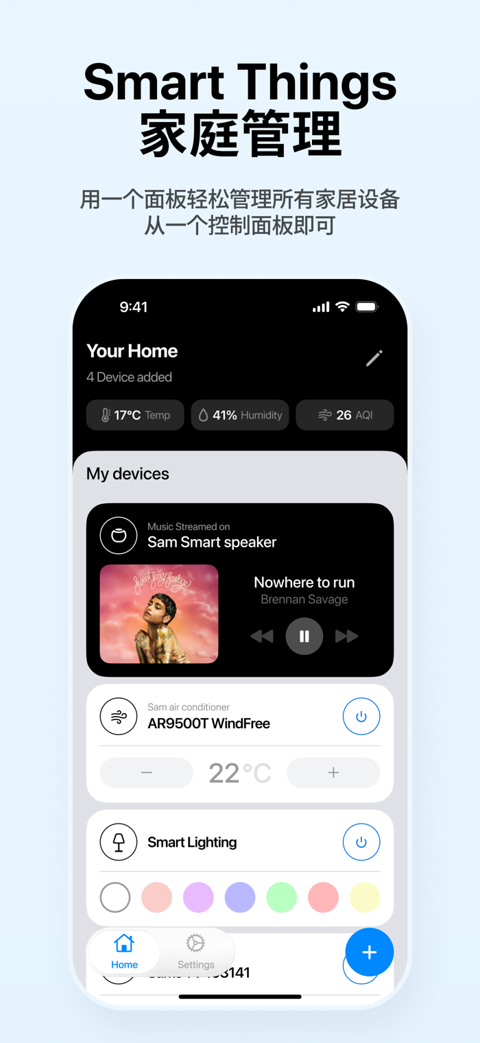 Smart Things 可让您通过手机远程无缝控制智能家居设备,用简单易用的应用管理娱乐与家庭环境。核心功能包括智能电视遥控、控制空调设置、管理 LED 灯光、连接控制智能音箱,多种设备一站式集成,自动检测设备,简单设置且随时随地安全连接,注重隐私设计,让家庭更智能,娱乐更轻松。订阅购买相关有明确规则,使用需同意隐私政策和使用条款。