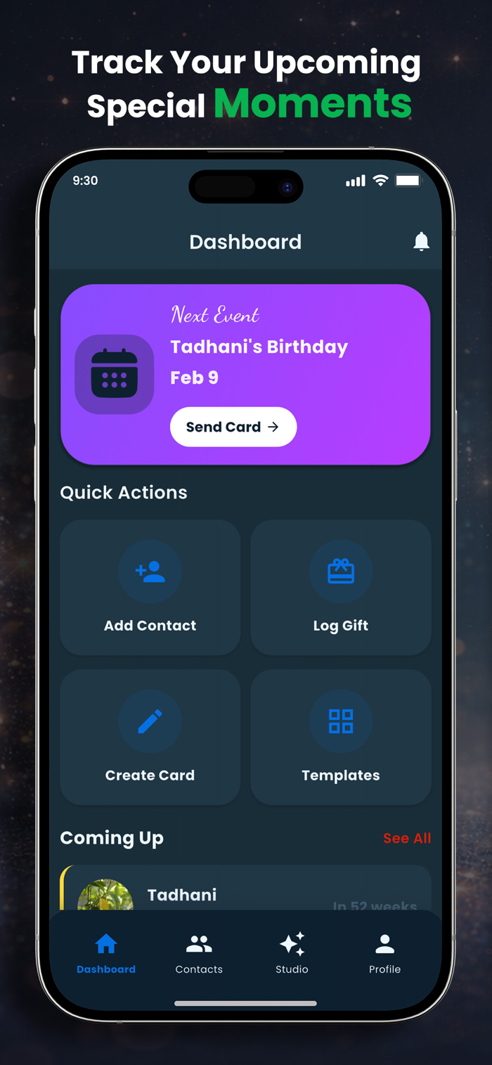智能提醒重要事件,管理礼物、卡片及联系人