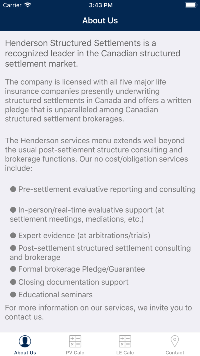 Henderson Structured Settlements was founded in 1981 and is a recognized leader in the Canadian structured settlement market. The company is licensed with all five major life insurance companies presently underwriting structured settlements in Canada and offers a written pledge that is unparalleled among Canadian structured settlement brokerages.