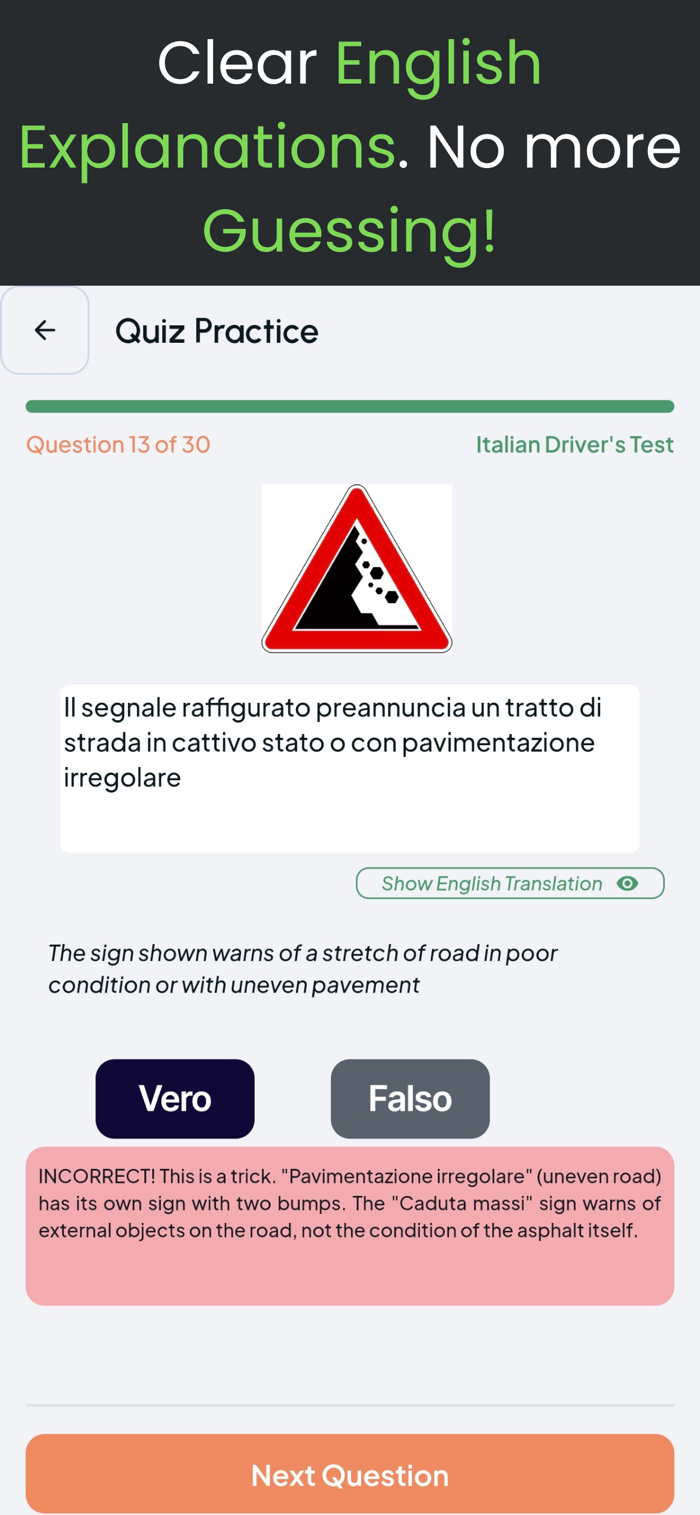 Struggling with the technical Italian of the "Patente B"? This study tool bridges the gap, helping English speakers understand the official Ministry database questions.