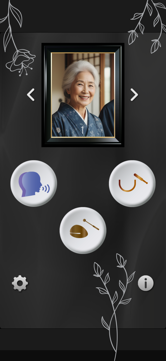 该应用用于缅怀逝者与所爱之人,可通过聆听佛经祈祷。提供78种日语佛经、木鱼声、钵声,有录音功能可添加自己的声音。设置中选多个佛经会按顺序播放,能用木鱼和钵按钮自诵经。能切换展示十张逝者照片,也有风景等预设图片供不用照片者选择。