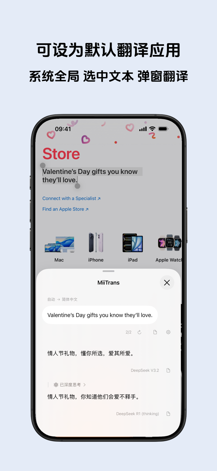 - 从 Safari、任意应用或 Siri 触发的翻译,自动调用 MiiTrans。