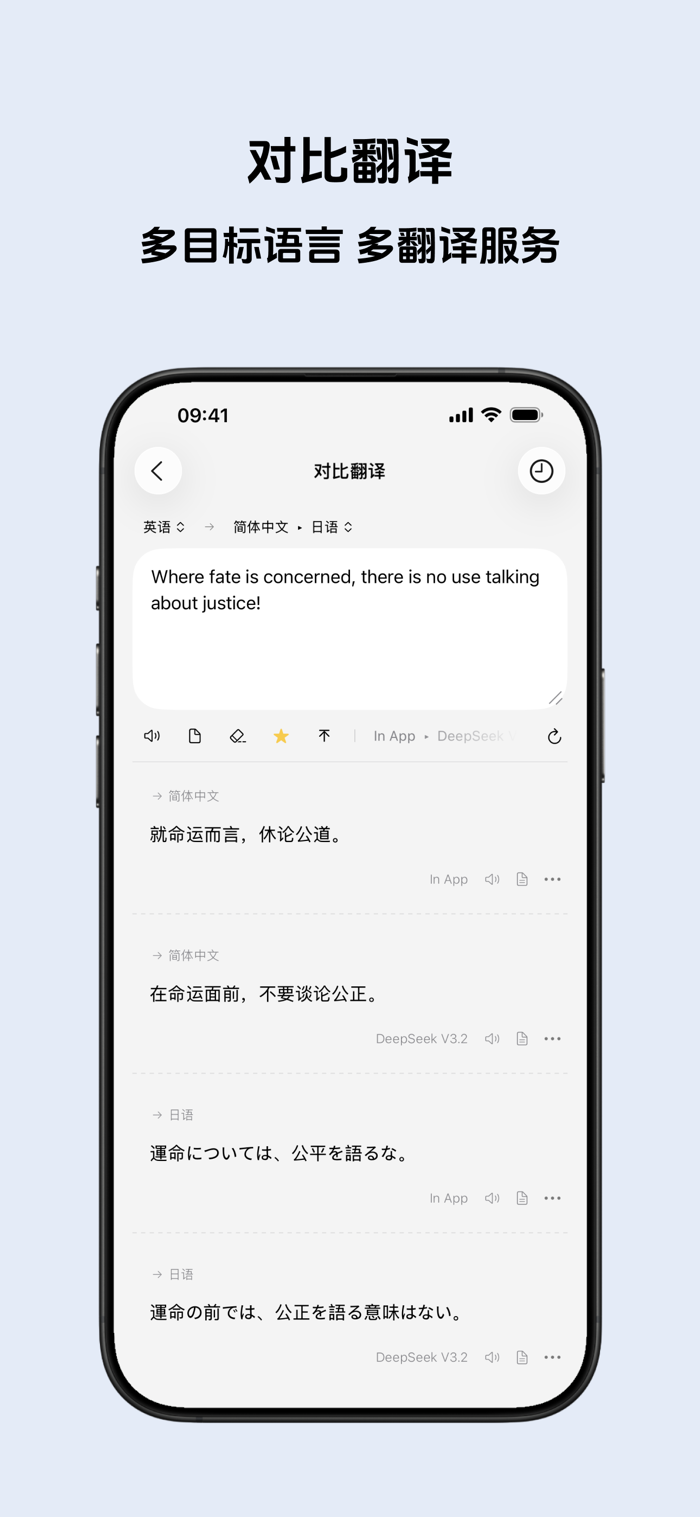 - 即时并排对比多语言和多翻译引擎结果。