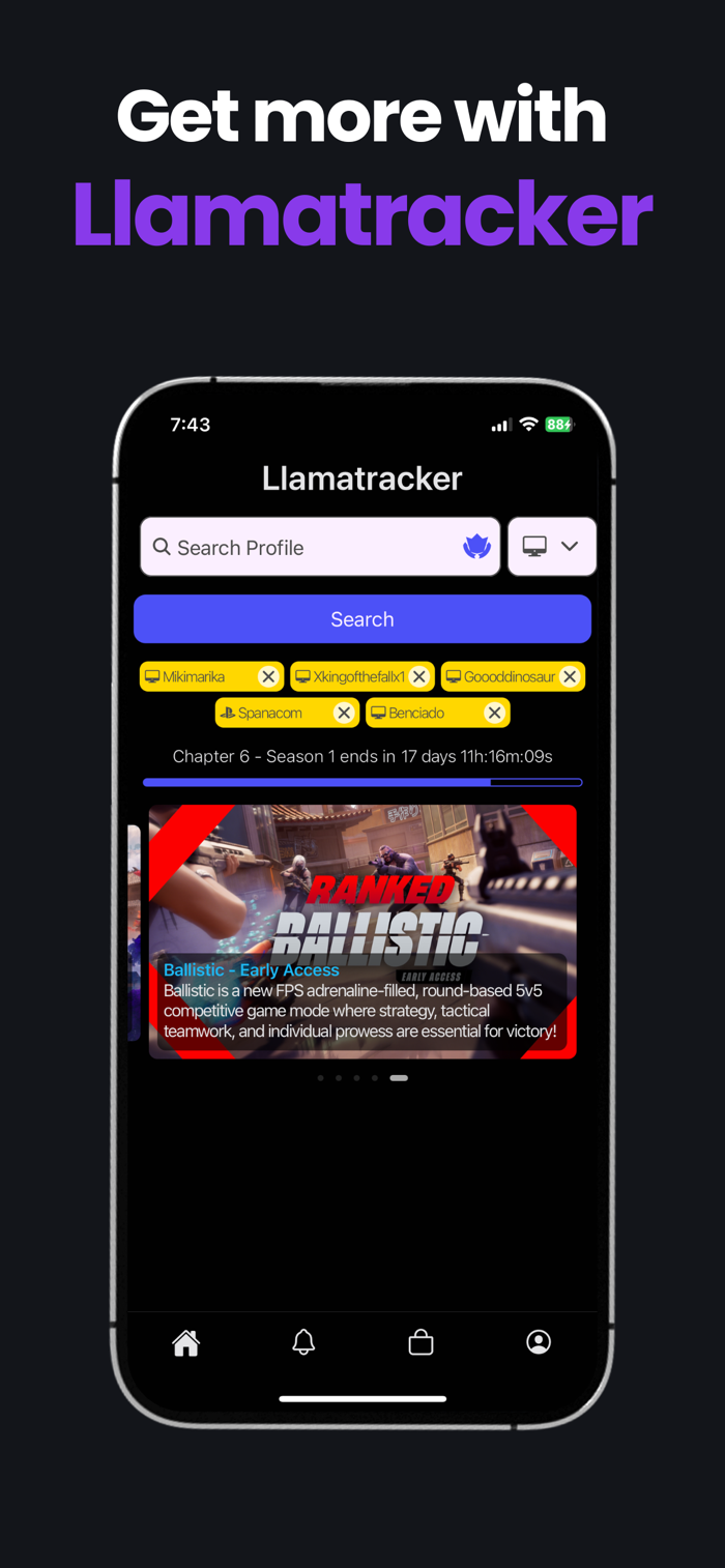 Llamatracker是一款深受全球玩家喜爱的Fortnite伴侣应用。它能让你追踪游戏内数据,掌握最新资讯。首页可快速搜索玩家、查看赛季信息与最新新闻,还能保存最近五次搜索记录;统计功能助你分析不同模式下的表现;统计详情则提供更深入的数据分析,助你全面掌握游戏表现,提升游戏水平。
