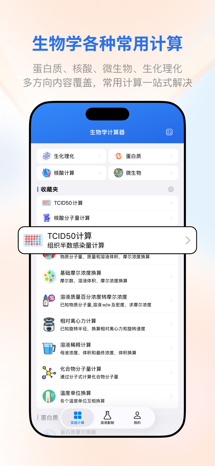 生物学计算器 2.0 (BioCalculator) 是一款为科研工作者、学生、生物技术开发者及实验室专业人士量身定制的专业移动应用。它不仅是一个工具集,更是您实验室台前的高效科研助手。