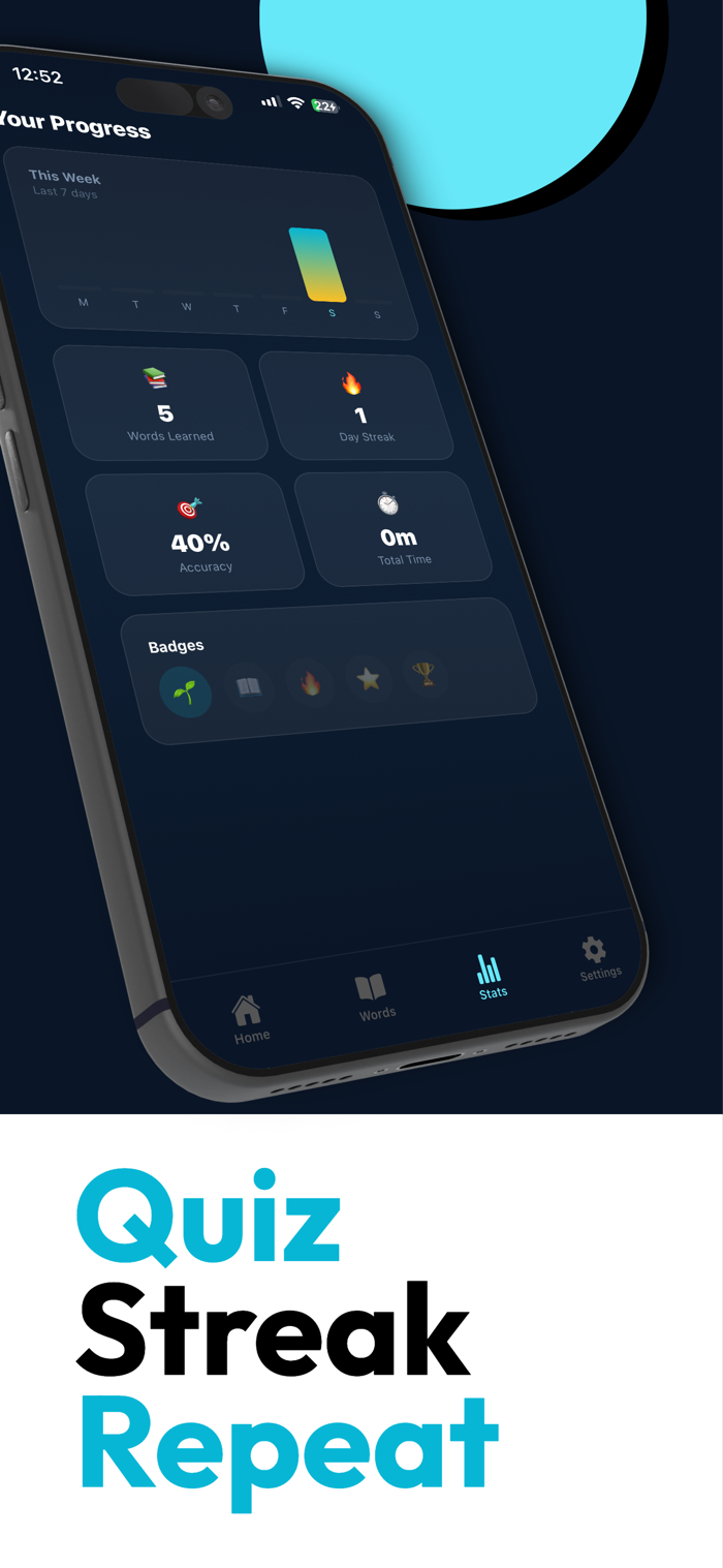 - Learn 5, 10, 15, or 20 new words per day