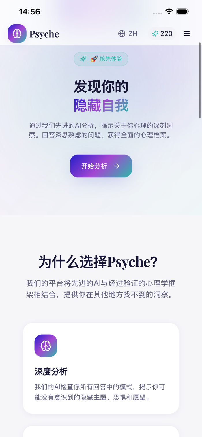 Psyche 通过 AI 驱动的心理反思帮助你更好地理解自己的内心。提出问题,探索你的想法,并深入洞察你的情绪和行为模式。