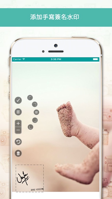 这个用于照片上水印的用户友好型应用程序使您可以选择使用文本,签名,QR码,徽标,版权和商标等添加水印。您可以添加签名以创建水印,并带有其他选项来调整不透明度,自动对齐,旋转和位置。