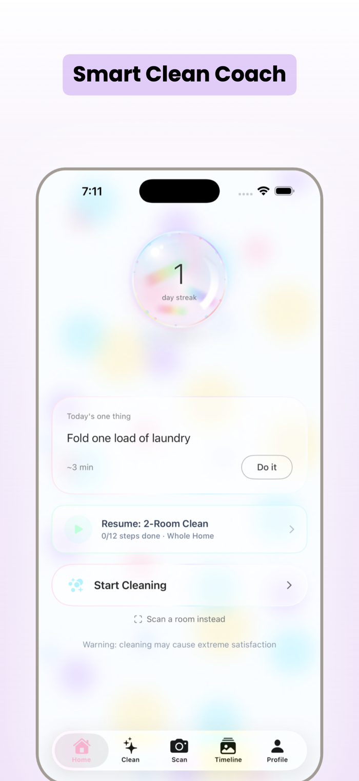 - 拍摄任何杂乱空间的照片,获取个性化清洁步骤
