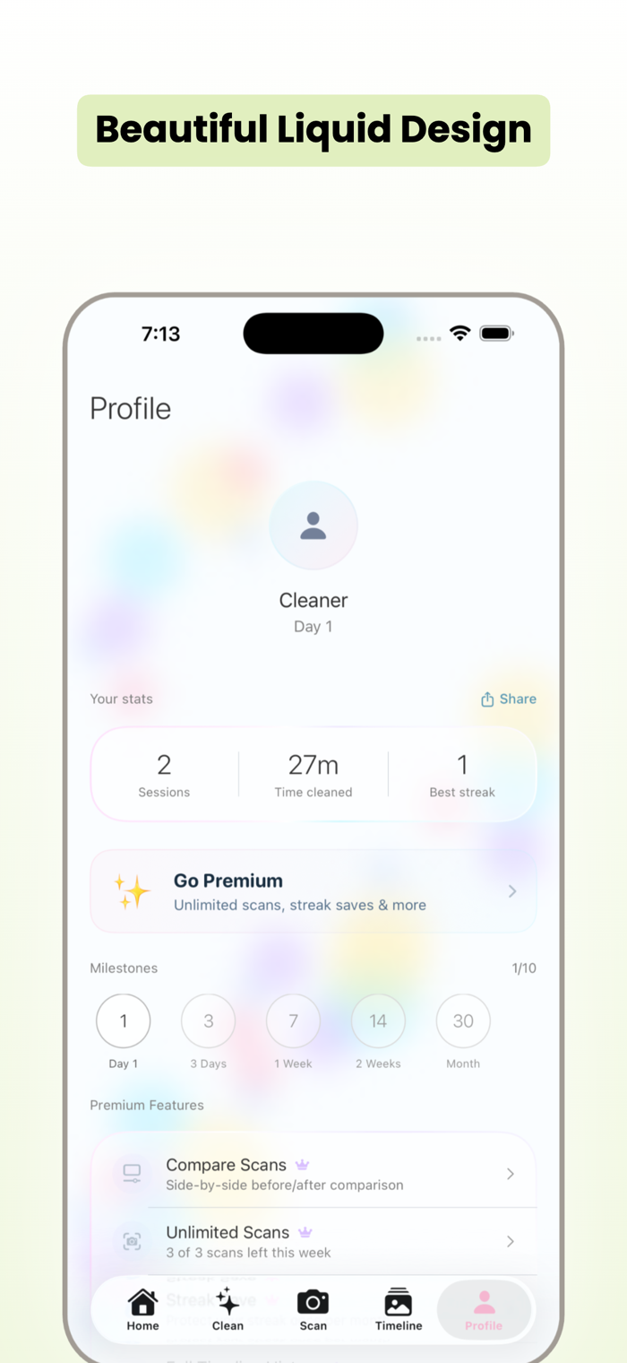 - 动态清洁评分(0 - 100)追踪你家的状况