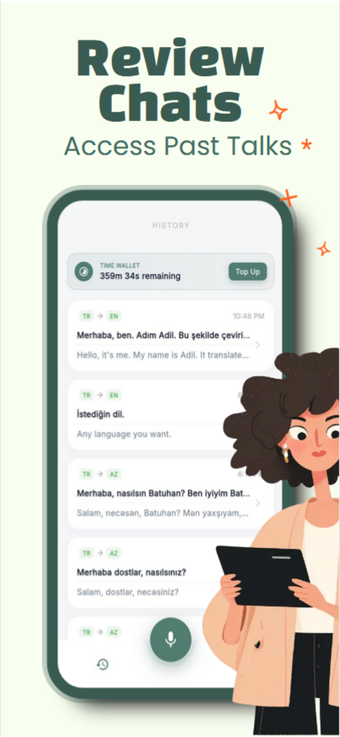 Time Wallet: Need more usage time? Simply watch a rewarded video to top up your balance. You choose when to watch ads, ensuring they never disrupt your conversation.