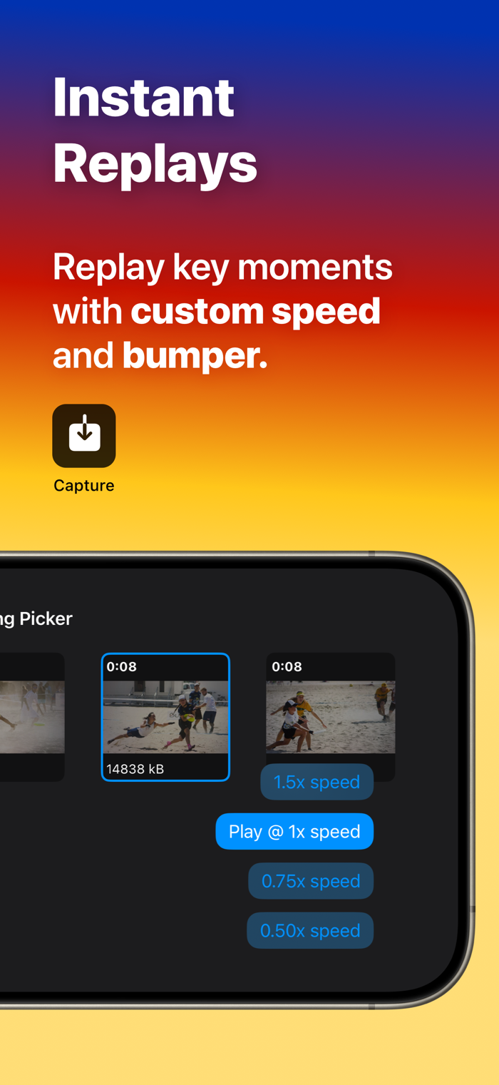 - Instant replays with bumper and custom speeds